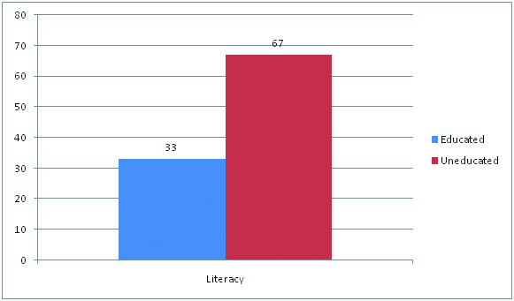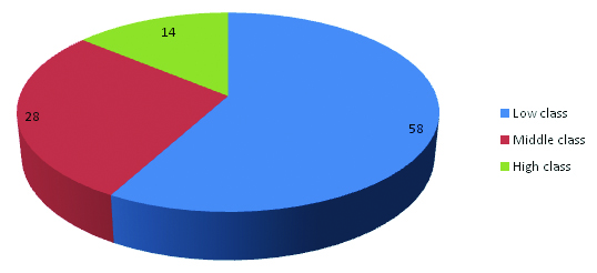 Out of 100 women with symptomatic vaginal discharge, specific diagnosis was obtained in 89% of cases whereas no specific aetiology detected in 11% cases [Table/Fig-3]. Majority (46%) patients belong to age group of 21-30 years while 25% cases were in age group of 31-40 years and 20% between 41-50 years. Bacterial vaginosis, Trichomonas vaginalis and Chlamydia trachomatis infection was common in women between the age groups 21-30 years accounting for 77% of cases while candidiasis was seen in women between age group 31-40 years. The association of age with the vaginal infections was not statistically significant (p >0.5). Majority of women (44%) complained of symptoms more than one year while (24%) patient had duration of disease between four and six months. Most of the women presented with homogenous discharge (52%) [Table/Fig-3]. Trichomonas vaginalis detected in 6% cases while clue cells were detected in 44% cases and 20% cases showed pus cells [Table/Fig-4,5,6]. The commonest symptom was malodorous discharge and pruritus in 27% cases [Table/Fig-7]. In Bacterial vaginosis and Chlamydia trachomatis infection homogenous discharge was most prevalent. 58% & 28% patients belongs to low and medium socioeconomic status respectively [Table/Fig-8], 67% cases were uneducated [Table/Fig-9] and 63% patient had bad hygiene [Table/Fig-10].