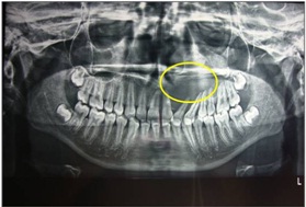 Electric Pulp Test with 21,22,23, showed negative result which was same for hot as well as cold vitality tests performed clinically. On the basis of clinical, radiological and cytological investigations Radicular Cyst was diagnosed.