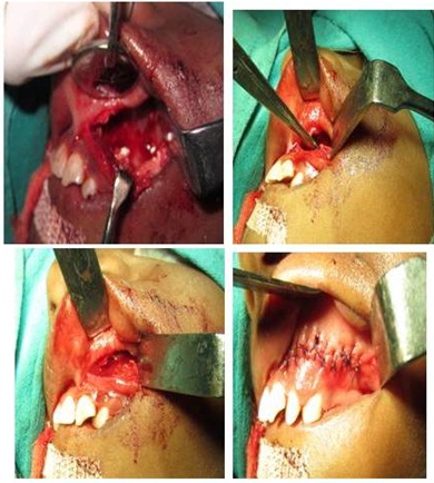 Apicoectomy followed by PRF & iliac bone graft placement followed by suturing