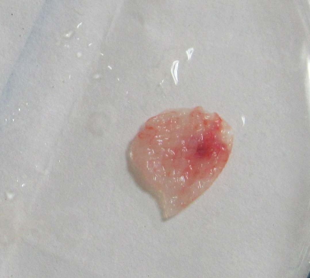 PRF membrane with a hole punched in the centre.