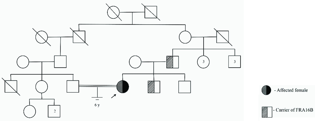 In conclusion, reports of additional families with similar phenotypes co-segregating with the FS would help in understanding the role of FRA16B in amenorrhoea. Further screening of this FS under induced conditions in other family members might help to identify yet undiagnosed conditions in the carriers.