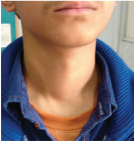 Image of the midline thyroid swelling, which moved in deglutition and was firm in consistency.