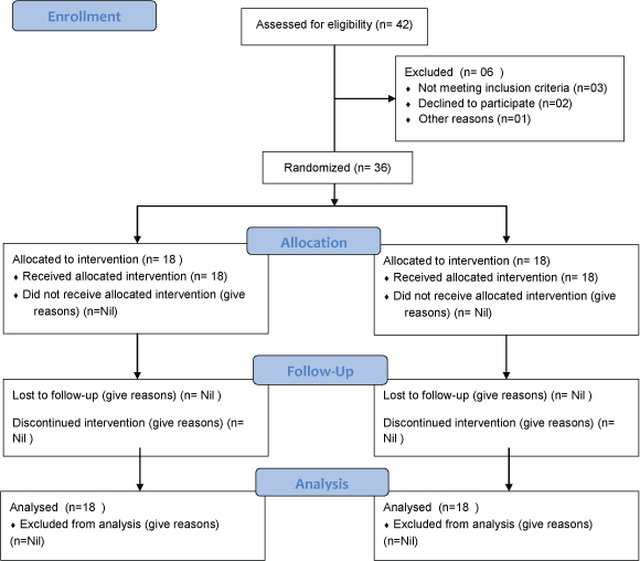 Study design was Randomized Control Trial (RCT) and the study duration was from April 2015 to March 2016. The ethical approval was taken from the Institutional Ethics Committee, KGMU and the RCT was being registered with Clinical trial registry of India (Registration no. CTRI/2017/02/007901). The consent was taken from each participant after explaining the objective of the study and ensured them about the confidentiality.