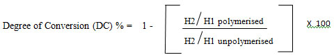 Degree of Conversion is calculated by the formula [19],