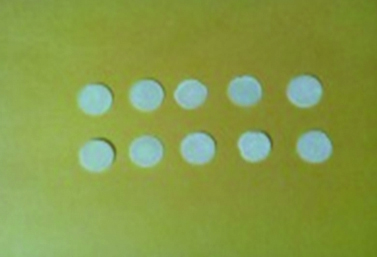 Prepared pellets of resin samples to be examined under spectrometer.