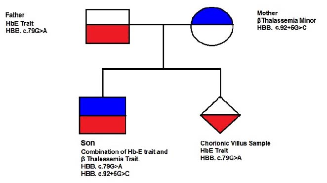 | Mother (35) | Hb | 9.4g/dL | 12 to 15 g/dL | c.92+5G>C | β+ / β | Thalas-saemia Minor |