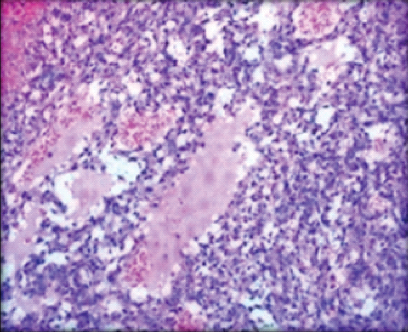 Areas of necrosis and haemorrhage (H&E, 10X).