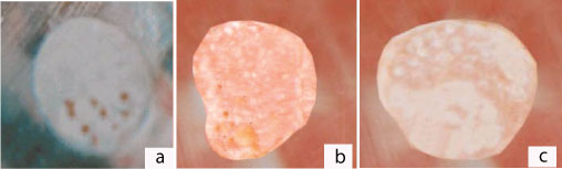 a) RMGIC-section-1, score-2 b) RMGIC-section-2, score-1 c)RMGIC-section-3 Score-0