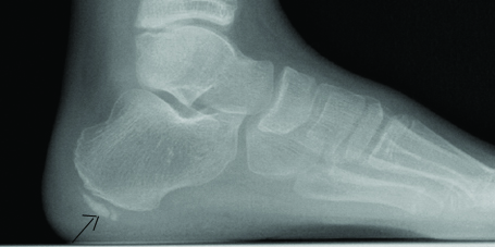 Fragmentation appearance of calcaneal apophysis on lateral foot graph.