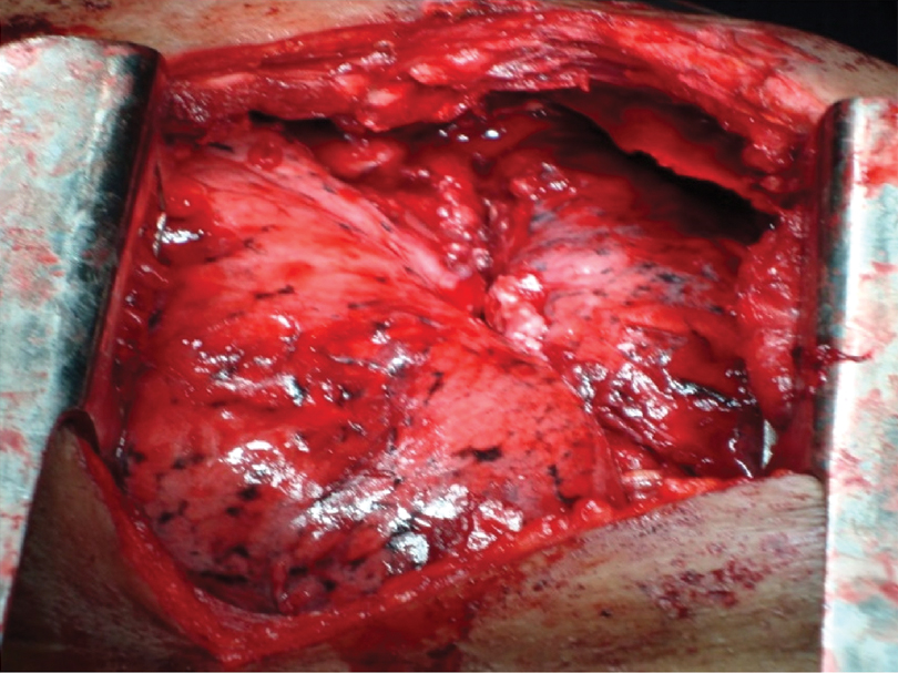Endotracheal intubation was maintained in most of the patients. Patients were either shifted to paediatric ICU or surgical ICU and were connected to ventilator under sedation. Intravenous antibiotics and bronchodilators were continued. Weaning was done gradually and all the patients were extubated by postoperative day 1. Adequate analgesics (parenteral paracetamol infusion was the drug of choice) were administered.