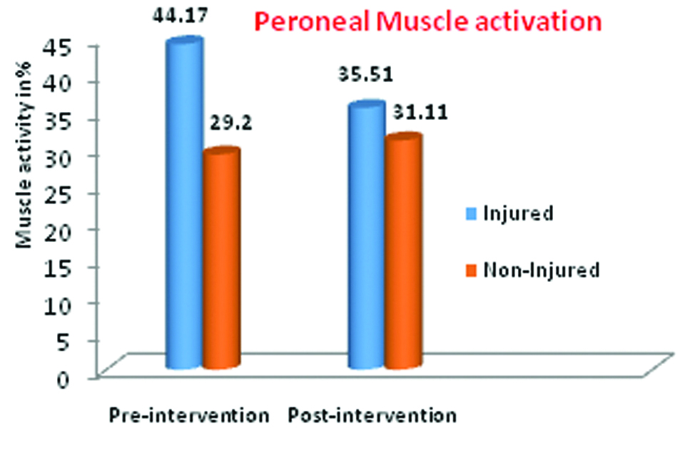 The measurements in [Table/Fig-8] show a decrease in peroneus longus muscle sEMG activation value percentage following NDT. Whereas, [Table/Fig-9] shows an increase in the spatial gait parameters and also changes in the force parameters of injured leg as compared to non-injured leg.