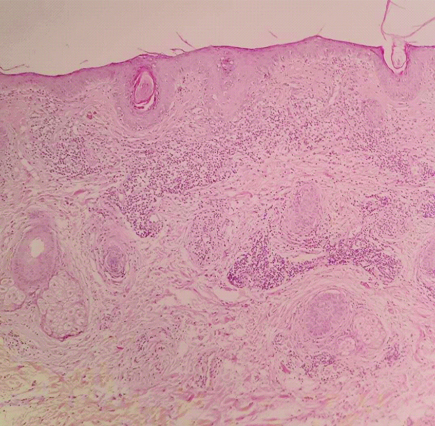 Successful treatment of the patient with hydroxychloroquine and prednisolone and lesional resolution in six months.