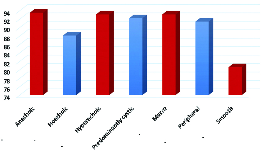 | Hypoechoic | 63.6 | 89.4 | 97.4 | 28 | 87.9 |