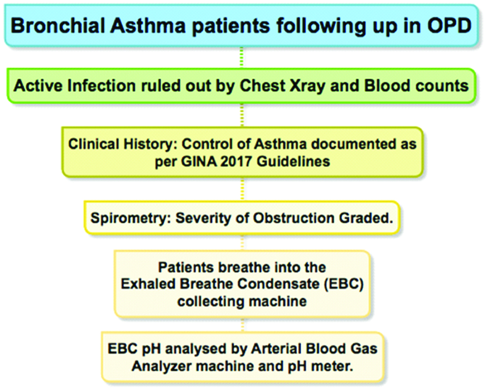 To study EBC pH among asthmatics in Indian population.