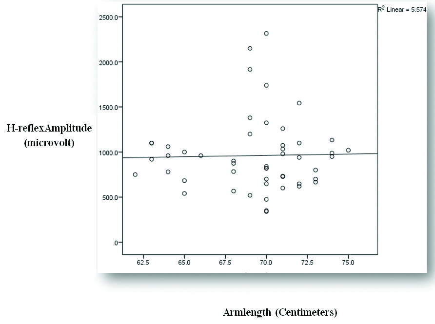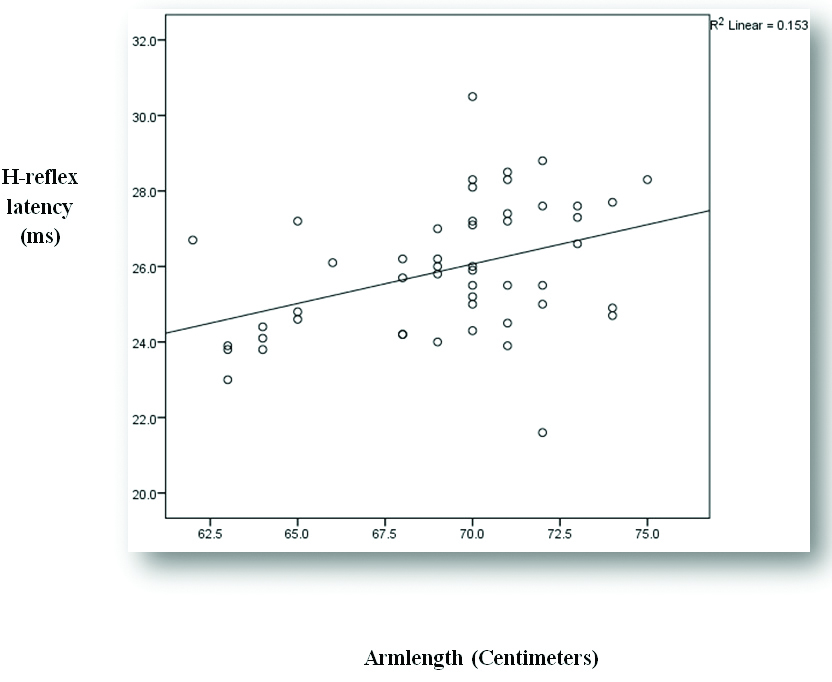 Representing correlation of arm length and abductor pollicis brevis H-reflex latency and amplitude.
