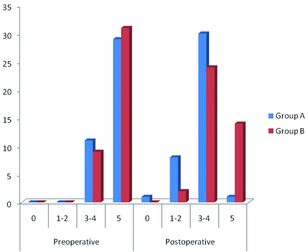 Modified Aldrete score was lower till 15 minutes after surgery in the propofol group. Similarly Goswami U et al., found significant difference till 5 minutes postoperatively [19] Bharti N et al., found the recovery time to achieve the aldrete score of 9 was same among groups [30].
