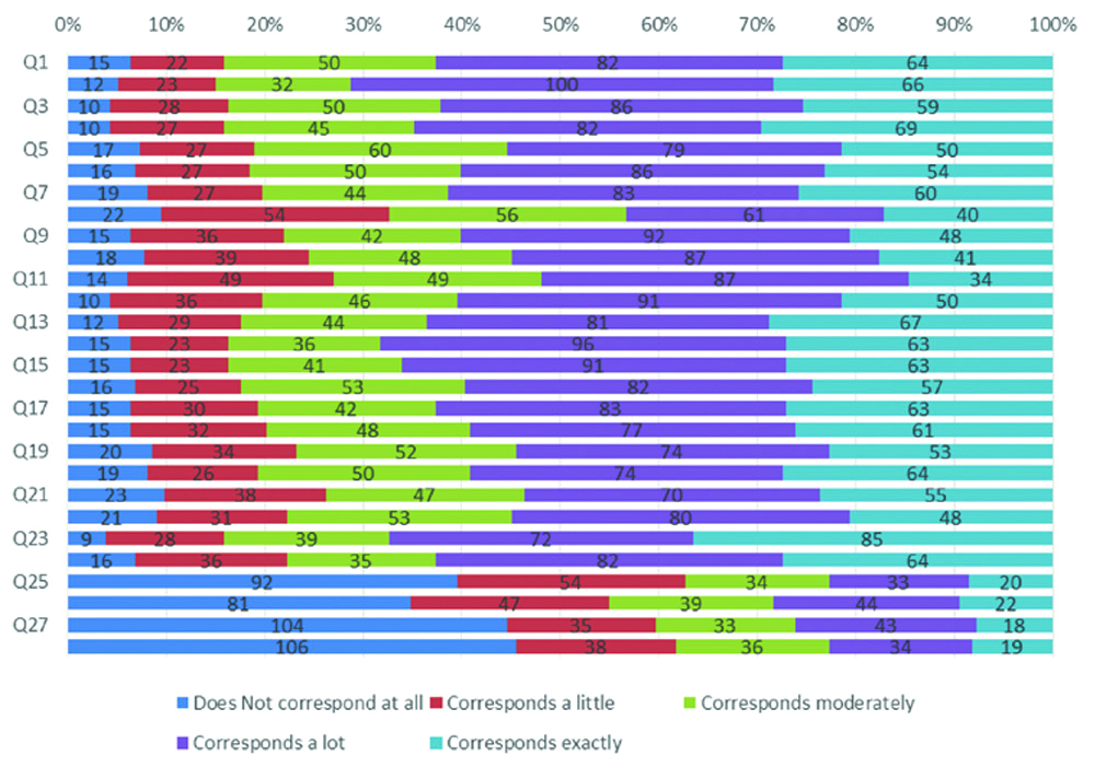 Most of the students, 159 (68.2%) were of the opinion that ‘It will enable them to enter the job market in a field that they like’ and 154 (66.1%) students said ‘This will help them make a better choice regarding their career orientation. A small proportion of students 41 (17.60%) said it either ‘does not correspond at all’ or corresponds a little when it comes to ‘Think that a college education will help them better prepare for the career they have chosen’.