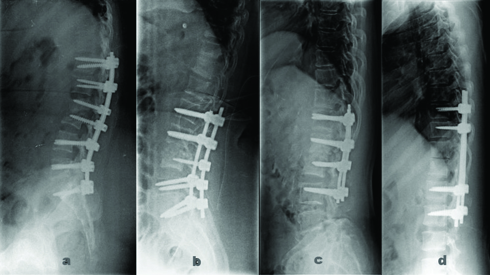 The preoperative images of the spine of all the four cases has been represented in [Table/Fig-1(a-d)]. And postoperative images of radiographic of all cases are shown in [Table/Fig-2(a-d)].