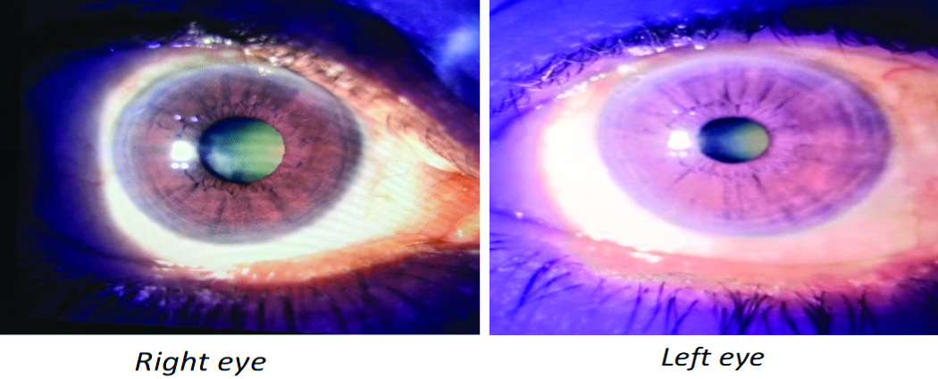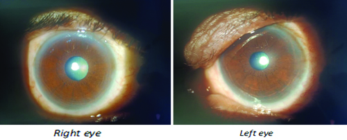 After one week, the patient returned again; the redness had decreased, and the limbal follicular lesions had also disappeared [Table/Fig-4]. The patient had no complaints, and her IOP was 20 mmHg in the right eye and 18 mmHg in the left eye. Therefore, she was continued on dorzolamide. The patient came back for follow-up after one month (while on dorzolamide) and reported no complaints [Table/Fig-5]. The IOP in both eyes was 18 mmHg.