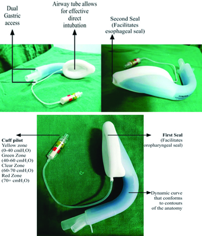 Assessment of this seal pressure, or leak pressure, is a manouver that has commonly been used to confirm the function of the device and for research purposes concerning these LMAs. Anecdotal evidence suggests that the newly introduced LMA Protector provides better oropharyngeal seal pressure when used for controlled ventilation [Table/Fig-1] [5-8]. However, there is a lack of conclusive literature to prove this in different head and neck positions.
