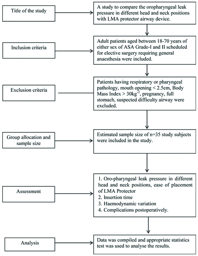 In all 35 patients, the position of the patient’s head and neck was changed randomly from neutral to flexion, extension, right lateral rotation, and left lateral rotation. The flow diagram is shown in [Table/Fig-2].