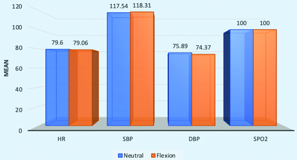 Comparison of HR, SBP, DBP and SpO2 in neutral to flexion position.