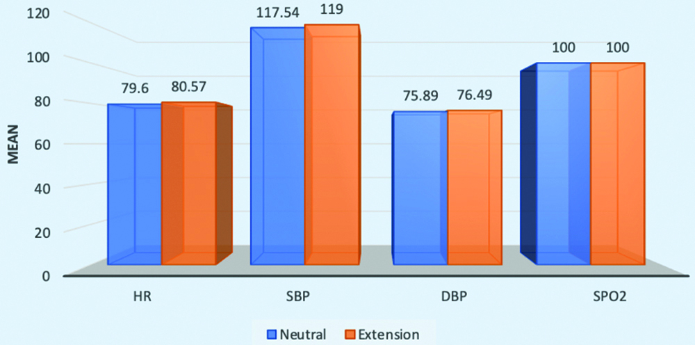 Comparison of HR, SBP, DBP and SpO2 in neutral to extension position.