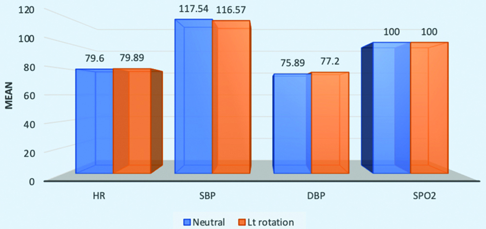 Comparison of HR, SBP, DBP and SpO2 in neutral to left lateral position.