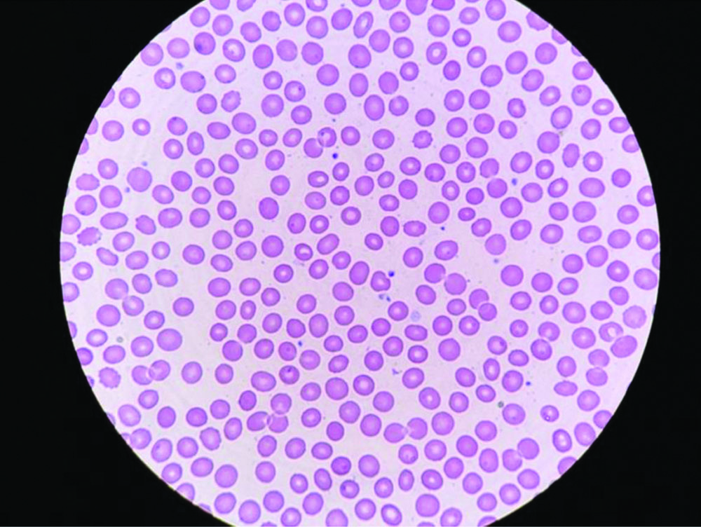 A 29-year-old primigravida at 35 weeks and five days was admitted for safe confinement due to immune thrombocytopenia. She was diagnosed with a low platelet count (0.85 L/per mm3) at 19 weeks of pregnancy. She was a known case of hypothyroidism and was on tablet thyroxine, 37.5 mcg once daily. A peripheral smear [Table/Fig-1] revealed microcytic hypochromic anaemia with thrombocytopenia. A haematologist’s opinion was obtained. The patient was advised to monitor her platelet count monthly and to seek further review if, the count dropped below 50,000.