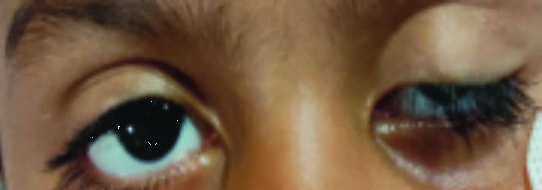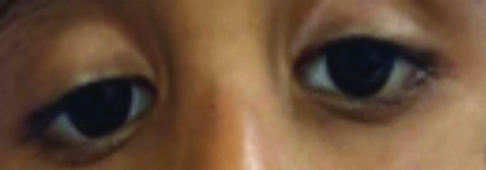A six-year-old girl presented with weakness in both lower limbs and drooping of the eyelids, which had lasted for one day. There was a history of loose stools five days prior to the onset of weakness. On examination, she exhibited normal higher functions, bilateral ptosis (left more than right) without ophthalmoplegia [Table/Fig-3], bilateral facial and bulbar weakness, hypotonia, areflexia and weakness in both lower limbs (2/5 power in all muscle groups), which progressed to the upper limbs, trunk and neck muscles over the next 24 hours. Complete blood count, C-reactive protein, serum electrolytes and renal and liver function tests were normal. Nerve conduction studies revealed the absence of CMAP with preserved SNAP, suggestive of the AMAN variant of GBS. CSF analysis revealed albumino-cytological dissociation. Antibodies against GQ1b, GD1a, GD1b, GM1, GM2 and GM3 were negative. She was treated with intravenous IVIg at a dose of 2 g/kg over five days. By day three of hospitalisation, her weakness progressed to 0/5 power in all limbs and she required mechanical ventilation, which continued for 60 days. As there was no significant improvement in weakness after two weeks, a repeat course of IVIg was administered. She also exhibited features of autonomic dysfunction, including hypertension, tachycardia, bradycardia and excessive sweating. Ptosis began to improve at the start of the third week. The GBS disability score at discharge on day 83 was four. She experienced significant recovery at the end of one year, with minor foot drop and a GBS disability score of 2.