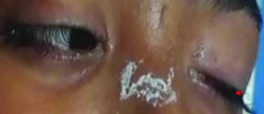 A nine-year-old boy, with a history of mild upper respiratory infection two weeks prior, presented with an acute onset of weakness in the lower limbs, which rapidly progressed over the next 12 hours to involve the upper limbs. At admission, he exhibited normal higher functions, bilateral ptosis without ophthalmoplegia [Table/Fig-2] and bilateral facial and bulbar palsy. There was hypotonia and areflexia, with power graded at 3/5 in all four limbs, which progressed to 0/5 power within two days, necessitating mechanical ventilation.