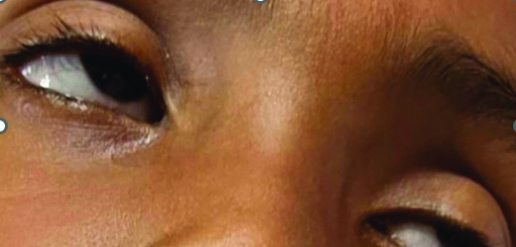 A five-year-old girl with a history suggestive of an upper respiratory infection one week prior presented with drooping of both eyelids, difficulty swallowing and drooling of saliva, followed by weakness in both lower limbs. On examination, higher mental functions were normal, with bilateral ptosis (right more than left) [Table/Fig-6], bilateral lower motor neuron facial palsy and bulbar palsy. Power was 0/5 in all limbs, with hypotonia and areflexia. Complete blood count, C-reactive protein, serum electrolytes and renal and liver function tests were normal. Nerve conduction studies revealed an absence of CMAP with preserved SNAP, suggestive of the AMAN variant of GBS. CSF analysis showed albumino-cytological dissociation. Antibodies against GQ1b, GD1a, GD1b, GM1, GM2 and GM3 were negative. MRI of the brain and spine was normal. She was treated with intravenous IVIg at a dosage of 2g/kg over five days. She developed respiratory failure on day 5 of illness and was ventilated for 15 days. She also exhibited features of autonomic involvement, including tachycardia, hypertension and excessive sweating. Her ptosis began to improve at the beginning of the third week. The GBS disability score at discharge on day 35 was 4. She had a good recovery at the end of one year, with a GBS disability score of 1.