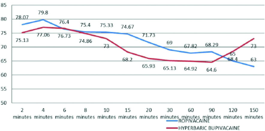The limitations of the present study would definitely be the need for rating patients’ experience and comfort level in terms of the relative recovery profile. Also, the effect of addition of additives such as opioids and study their respective potencies and duration of spinal action/regression with a smaller volume of the parent LA agents. As this was the first time 0.75% hyperbaric ropivacaine was used, the authors wanted to evaluate its action and drug profile in comparison to 0.5% hyperbaric bupivacaine. Hence, the authors decided to use full dose of both the drugs while keeping in mind the dose toxicity limits of each, which made it safer to include only ASA class I and II patients in the study. Thus, on completion, the authors can now concentrate on using 0.75% hyperbaric ropivacaine in smaller doses and with adjuvants on individuals with known systemic and/or functional limitations, ASA class III or IV.