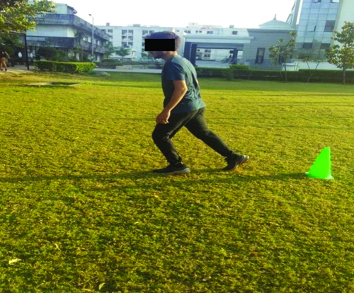 4. Arrowhead Agility Drill Test [22]: This test was conducted to assess the agility of players according to standard procedures [22]. The test is shown in [Table/Fig-4]. The participant completed a total of four trials, two on the right-side and two on the left-side. The time taken to complete the test was recorded in seconds [Table/Fig-4].