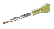 The finger bone model containing cortical bone and cancellous bone was constructed by guiding from radiographs of the metacarpel bone model. Then, the model was discredited into the geometric (i.e. CAD) model shown in [Table/Fig-1] into smaller and simpler elements containing cortical bone and cancellous bone was constructed. A metacarpal block 3696 mm-length, 1462 mm-width and 1379 mm-height was modeled. The Titanium implant model based on bone level implant (Astratech Osssospeed implant systemTM, Mölndal, Sweden) of 4.5 mm diameter and 14 mm length was selected from one case that was with implant retained finger prosthesis in Golden Jubilee Medical Center, Mahidol University, Thailand. The prosthesis system was composed primarily of 3 parts: (a) the implant, (b) the abutment and (c) the abutment screw [Table/Fig-1].