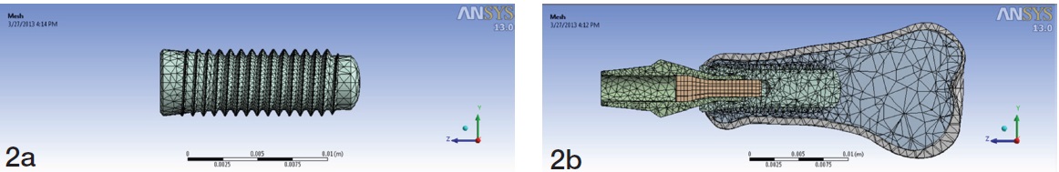 The models were designed in Solid Works 3D software (Solid Works Corporation, Massachusetts, USA) and transported to ANSYS 13 (ANSYS Inc., Southpointe, Canonsburg, PA, USA).