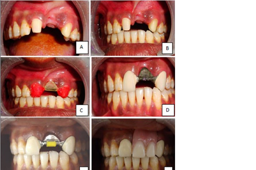 During treatment planning case selection was the important part of the treatment as there was severe bone loss in both cases. The esthetic replacement of anterior teeth is a difficult challenge, especially in the maxillary arch. This situation can be further complicated by the presence of a ridge deformity. These anatomic defects may seriously compromise the esthetics of the final restoration [1]. All the treatment choices were explained to the patient, after the patients final decision the Andrews bridge was the treatment of choice.