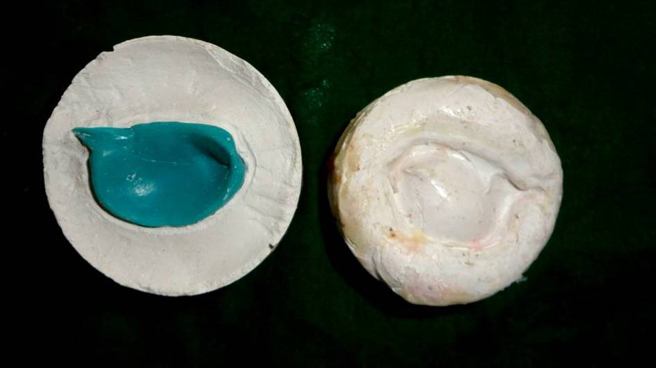 Impression was made of the ocular defect using a non-irritating light body poly vinylsiloxane elastomeric impression material (Aquasil, ULTRA LV, Dentsply) [Table/Fig-5].