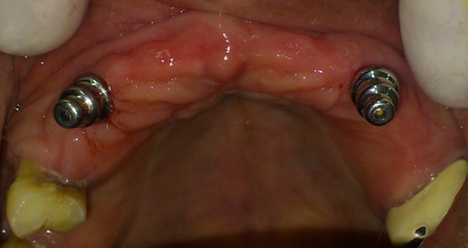 After three months of healing period, radiographs demonstrated successful oseointegration of the implants placed.