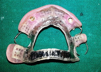 ISRPD is a space-sensitive treatment [15]. Inter-occlusal space must be carefully assessed prior to treatment. Insufficient bulk of acrylic may lead to poor strength and need for frequent repairs of the prosthesis. Design principles for an ISRPD should be consistent with those of a conventional RPD. The partial denture should be well reinforced with metal around the location of the implant attachments. This prevents complications like the fracture of acrylic around the implant attachment housing.