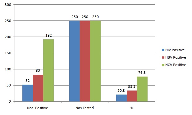 | anti-HIV , HbsAg , anti- HCV Reactivity (n=250) |
