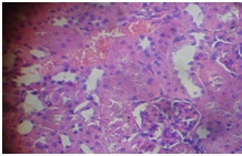 Furthermore, the Kidney [Table/Fig-11] of APAP-treated rats showed hemorrhage vacuolization, tissue oedema with few dilated blood filled vessels, tubular degeneration and necrosis while the kidney of the normal control rats [Table/Fig-12] showed normal renal glomeruli and tubules. The kidney of animals in groups 3-7 showed almost normal renal glomeruli and tubules comparable to the control [Table/Fig-13,14and15].
