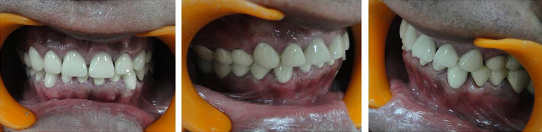 Full mouth rehabilitation is complex not only because of its long treatment time but also it requires good skills to create a balance between patient expectations and possible treatment results. One of the most demanding aspects in restoring the worn dentition is reconstruction of VDO at the centric relation and acceptable for the patient at the neuromuscular level [7]. VDO was increased to develop sufficient restorative space. Provisional restorations were given to achieve predictability and determine the tissue tolerance for change in vertical dimension. Also it psychologically comforted the patient.