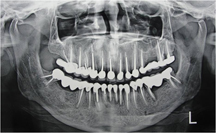 Depending on the degree of tooth wear, full-mouth rehabilitation can be accomplished by conservative composite restorations, resin bonded ceramic crowns and post-core and cast restorations [8]. In our case conservative composite restorations could not be opted as the remaining tooth structures were insufficient for retention of composite. Postobturation coronal restorations were done with composite for the posterior maxillary and mandibular teeth but that too after inserting prefabricated metal posts for giving sufficient retention. In this case implants could also be used to replace some missing/infected teeth but our patient had financial constraints and also was unwilling to go for extensive surgical procedures.