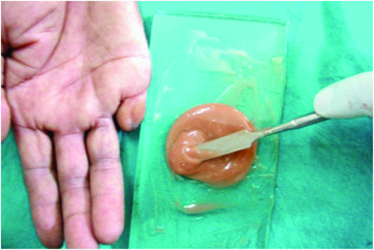 The patient was made aware of the treatment i.e. the fabrication of artificial finger prosthesis. The patient readily accepted the treatment; however he was a little anxious. Counselling of the patient was done so as to make him comfortable during the treatment and was told about the limitations of the prosthesis.
