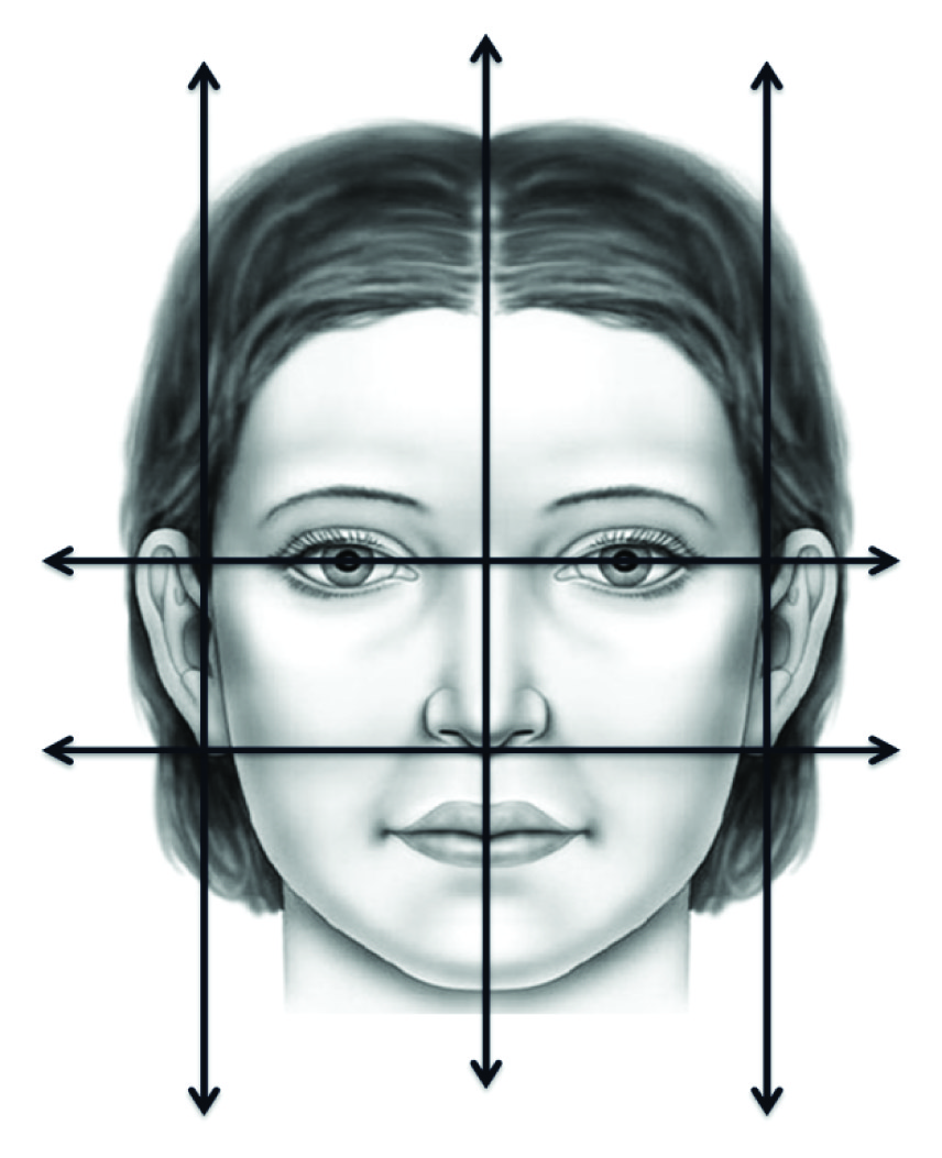 Horizontal and vertiacl lines drawn to determine the facial form