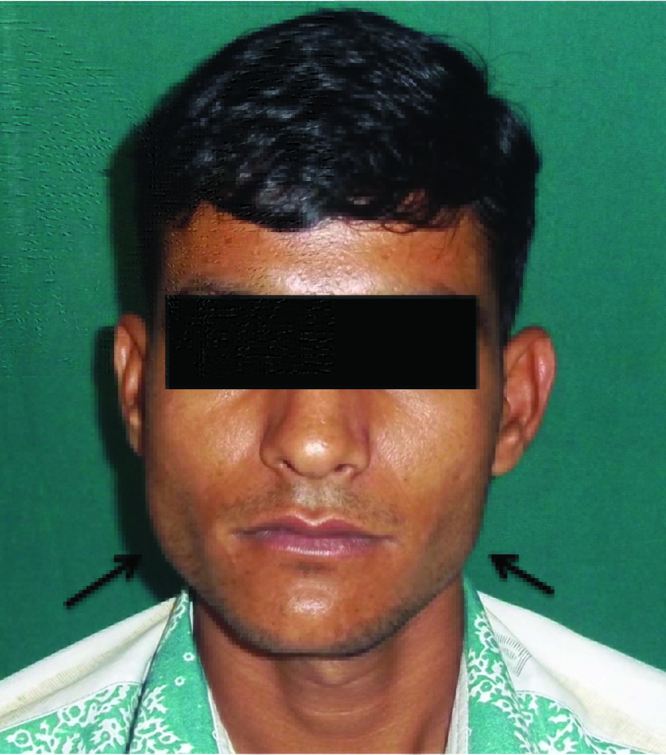 OSMF manifests variety of clinical features that varies from reduced mouth opening and burning sensation to hearing loss and dysphagia in advanced cases [6]. One of the clinical features not to be missed out is masseter muscle hypertrophy (MMH), seen on both right and left side of face in some patients of OSMF [Table/Fig-1]. Prolonged high activity of the muscles results in increased thicknesses of the masseter muscle [7]. The probable cause of this hypertrophy is increased demand on the muscle due to the habit of guthka chewing [8].