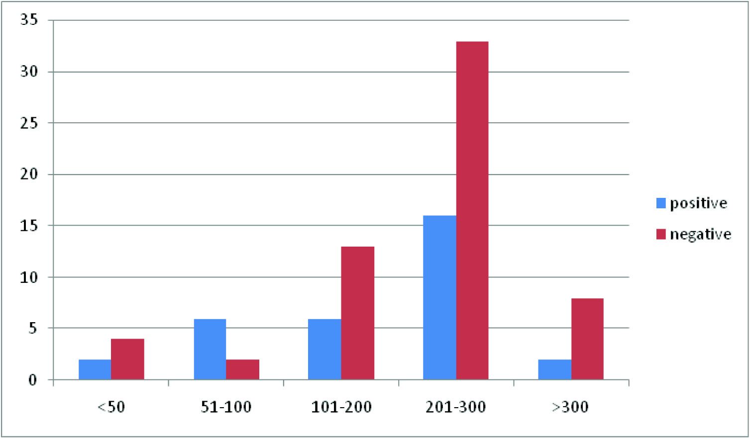 | >50 | 1 | 2 | 3 | 33.33% |