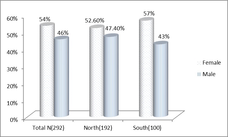 | South N=100 (%) | North N=192 (%) |