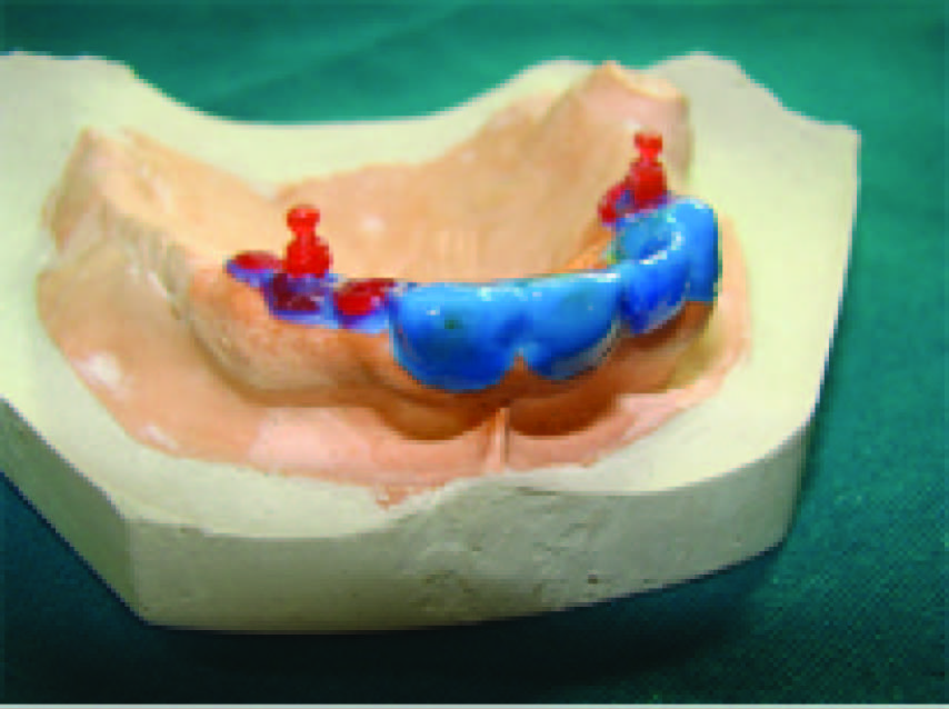 Wax pattern for fabrication of porcelain fused to metal bridge on abutments 11, 13 and 21 with extracoronal precision attachment